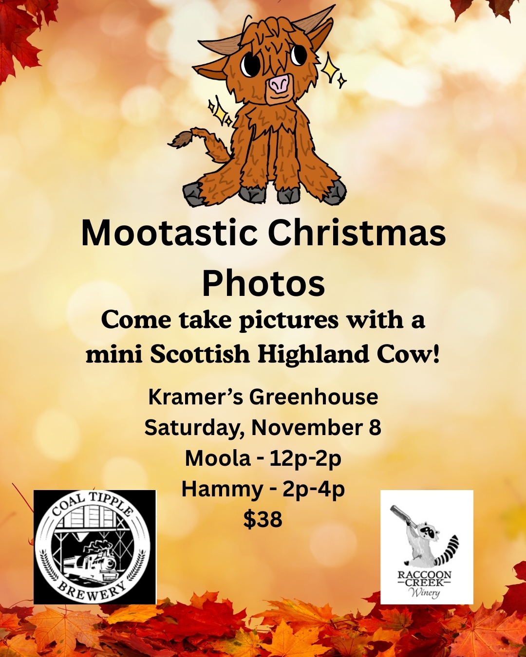Come in costume and get a picture with our spooky Miss Moola and the always dashing Hamilton! $15 for meet and greet and take your own photos First come, first serve